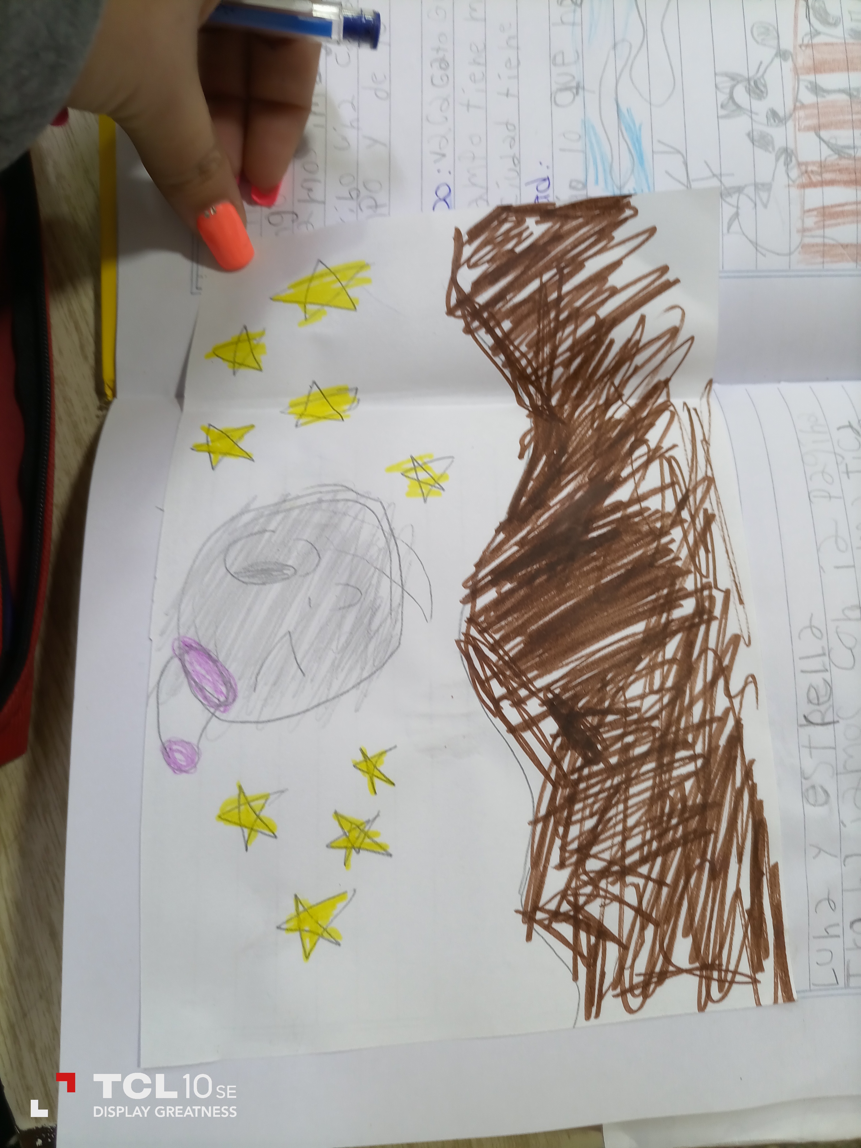Iniciamos el tema realizando una indagación de ideas previas, pidiéndoles que dibujen el día y la noche y agreguen un pequeño texto que sirva de explicación. Fue muy interesante observar cómo la gran mayoría de las y los estudiantes relacionaban directamente la noche con la presencia de la Luna y el día con la presencia del Sol. Luego comenzamos a realizar observaciones del cielo para ubicarnos desde nuestra escuela, con referencias geográficas que nos permitieran relacionar con la salida y puesta del Sol. A continuación sí nos metimos de lleno con el estudio de la Luna, observando y registrando lo observado tanto con dibujos como con pequeños textos comentando lo visto y la hora. Allí empezó a surgir la Luna en diferentes horarios, tanto diurnos como nocturnos, las observaciones más productivas fueron las que pudimos hacer en la escuela