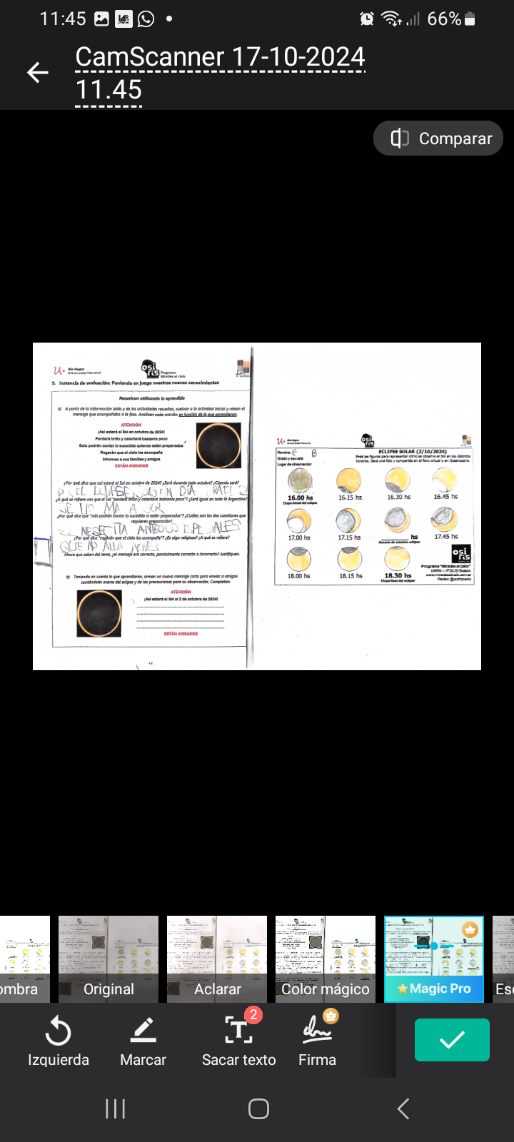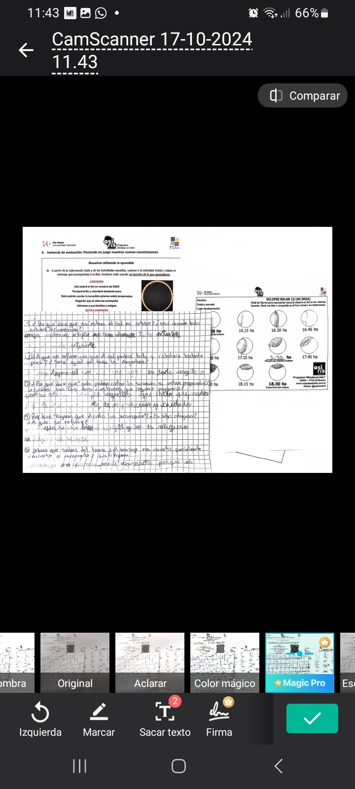 ¡Qué buenos esos registros del eclipse solar, tanto desde las casas de los estudiantes como de lugares donde se juntaron con su docente!