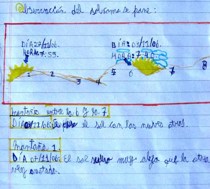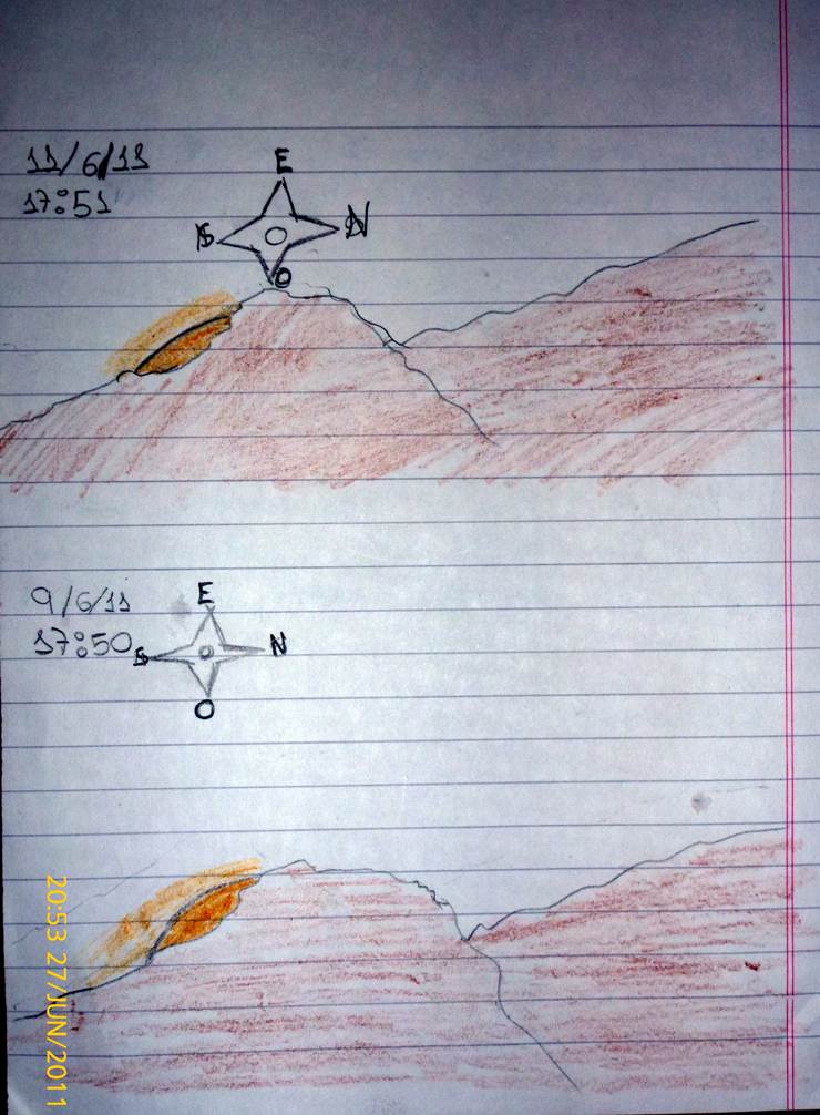 También les cuento que como nos vamos acercando al SOLSTICIO de invierno, los cambios en las observaciones son muy sutiles, ya que como dicen los abuelos ahora el sol esta yendo a “tranco de pollo” para llegar a solsticio (sol quieto). Luego sale a “tranco de gallo” hacia el Equinoccio. Seguimos observando y compartiendo los registro para ir ampliando nuestros conocimientos.- saludos para tod@S NOS LEEMOS.
